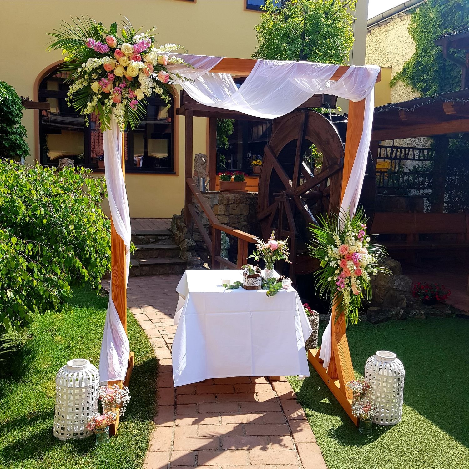 Slavobránu tvoříme na míru, vždy tak aby ladil s celou svatební dekorací. Ceny se proto mohou odlišovat. Vždy Vám slavobránu naaranžujeme a naceníme dle Vašeho přání.