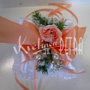 Polštářek na snubní prstýnky číslo 16. je tvořen z dekorativního polštářku, který je doplněn květy , které jsou lepené speciálním lepidlem na živé květy . Květy jsou pak postříkané speciálním sprejem proti vypařování vody. Pro udržení snubních prstýnků jsou v polštářku zapíchnuté dva špendlíky s okrasnou hlavičou.