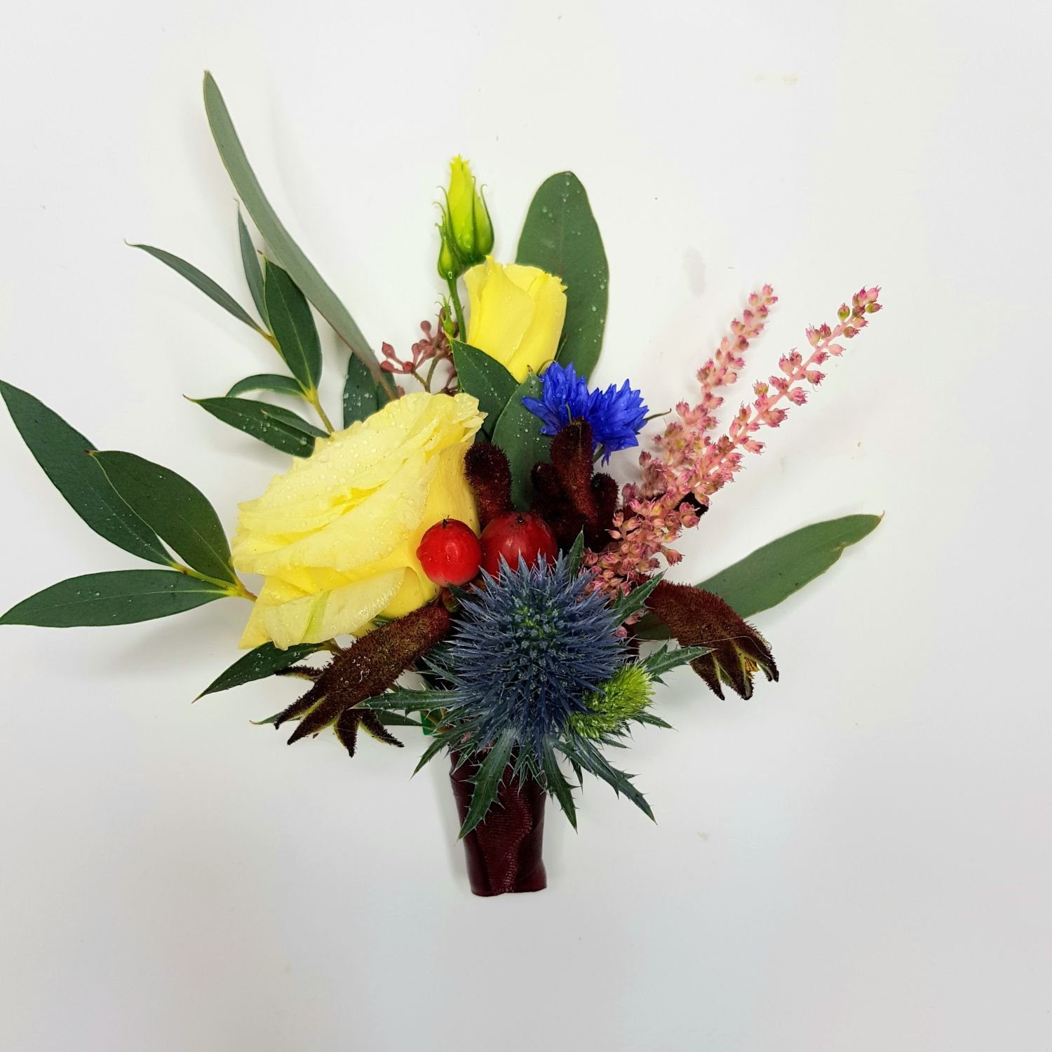 Korsáž pro ženicha číslo 8. Tyto dekorace se tvoří vždy z jednoho dominantního květu, který je ve svatební kytici. Kytička pro ženicha se dává do klopy a nebo se špendlíkem přichytí na kapsičku u saka na levé straně.