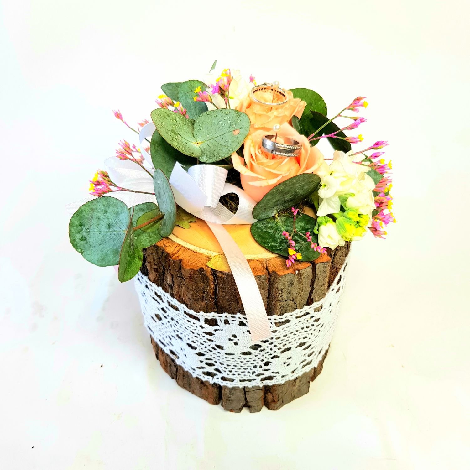 Dekorace na snubní prstýnky č. 2. je vždy tvořena z květů co jsou obsažené ve svatební kytici.