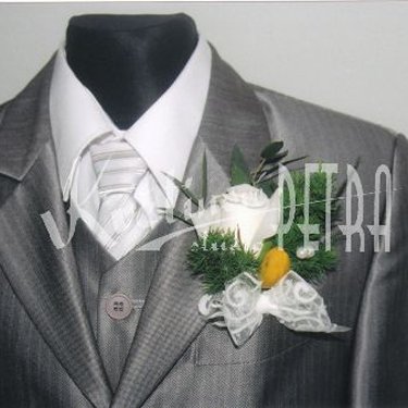 Korsáž pro ženicha se vždy tvoří z květů které jsou obsažené ve svatební kytici. Je to drobná kytička, která se umisťuje na levou stranu saka, tam kde je srdce.
