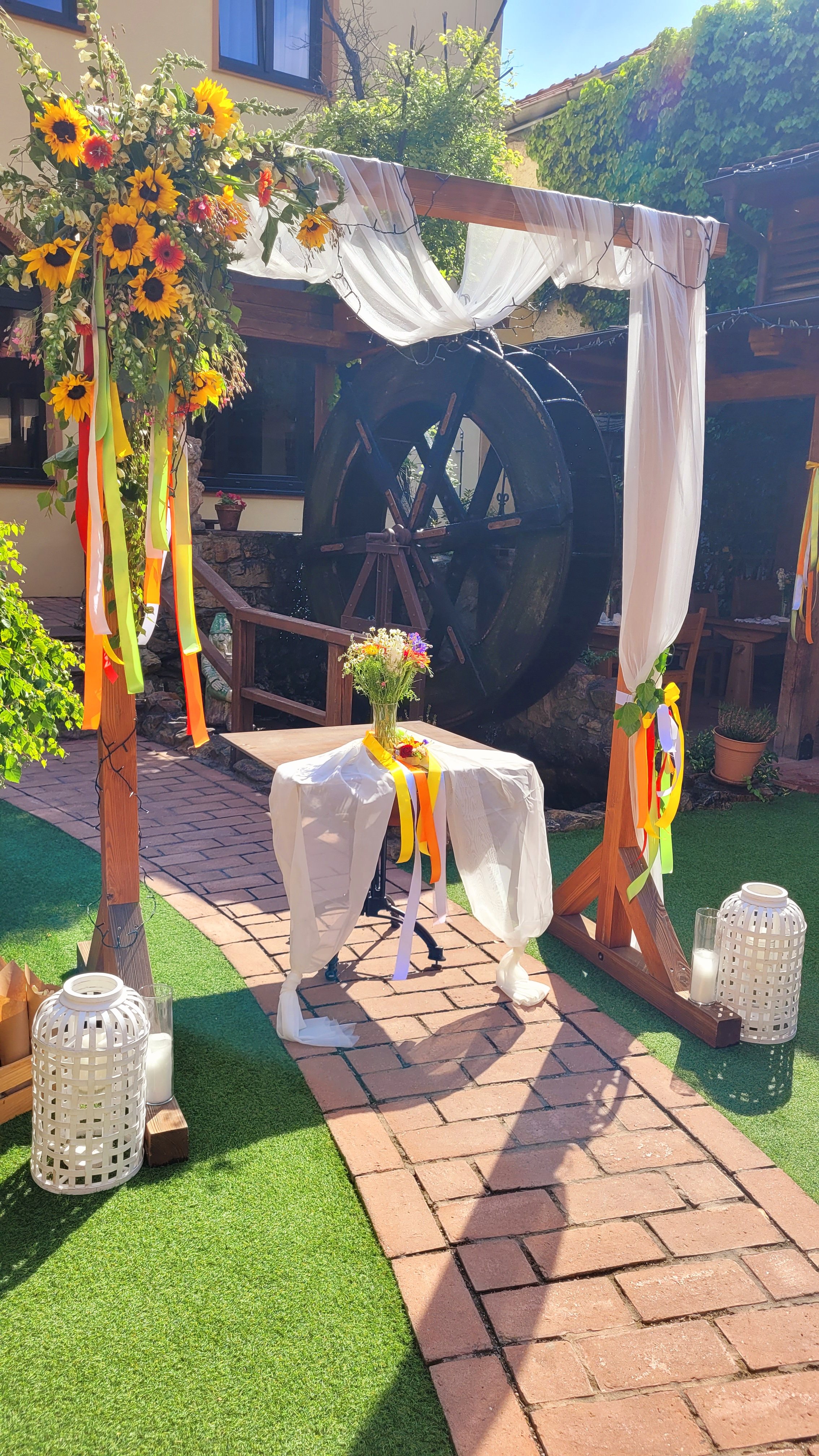 Slavobránu tvoříme na míru, vždy tak aby ladil s celou svatební dekorací. Ceny se proto mohou odlišovat. Vždy Vám slavobránu naaranžujeme a naceníme dle Vašeho přání.