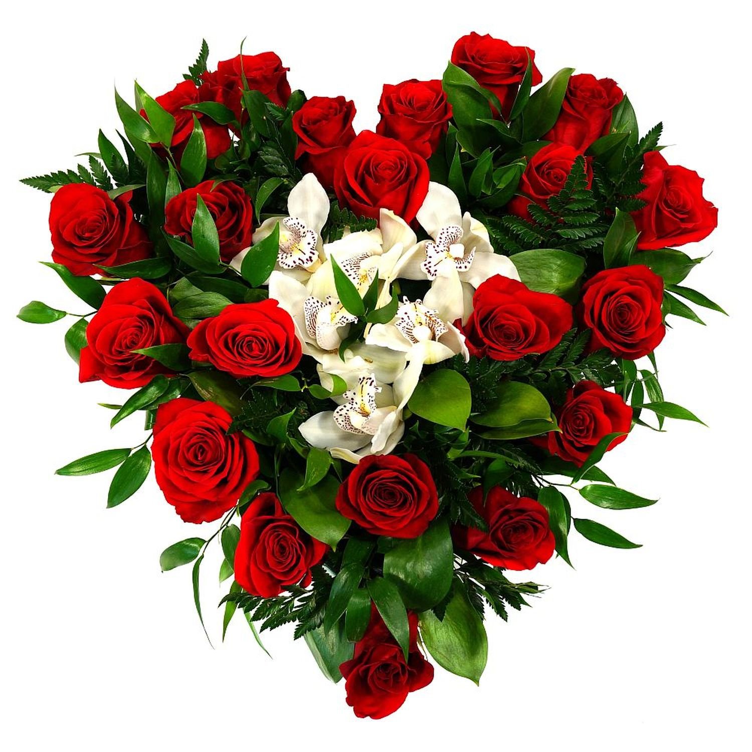 20 ks růží, 7 ks květy orchideje, florexová hmota a dekorativní zeleň (ruscus, italský ruscus). (cca. 50cm)