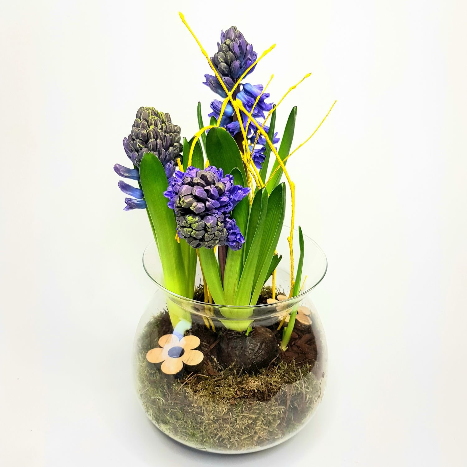 Tato jarní dekorace je tvořena z hyacintu, který je zasazený ve skleněné nádobě.