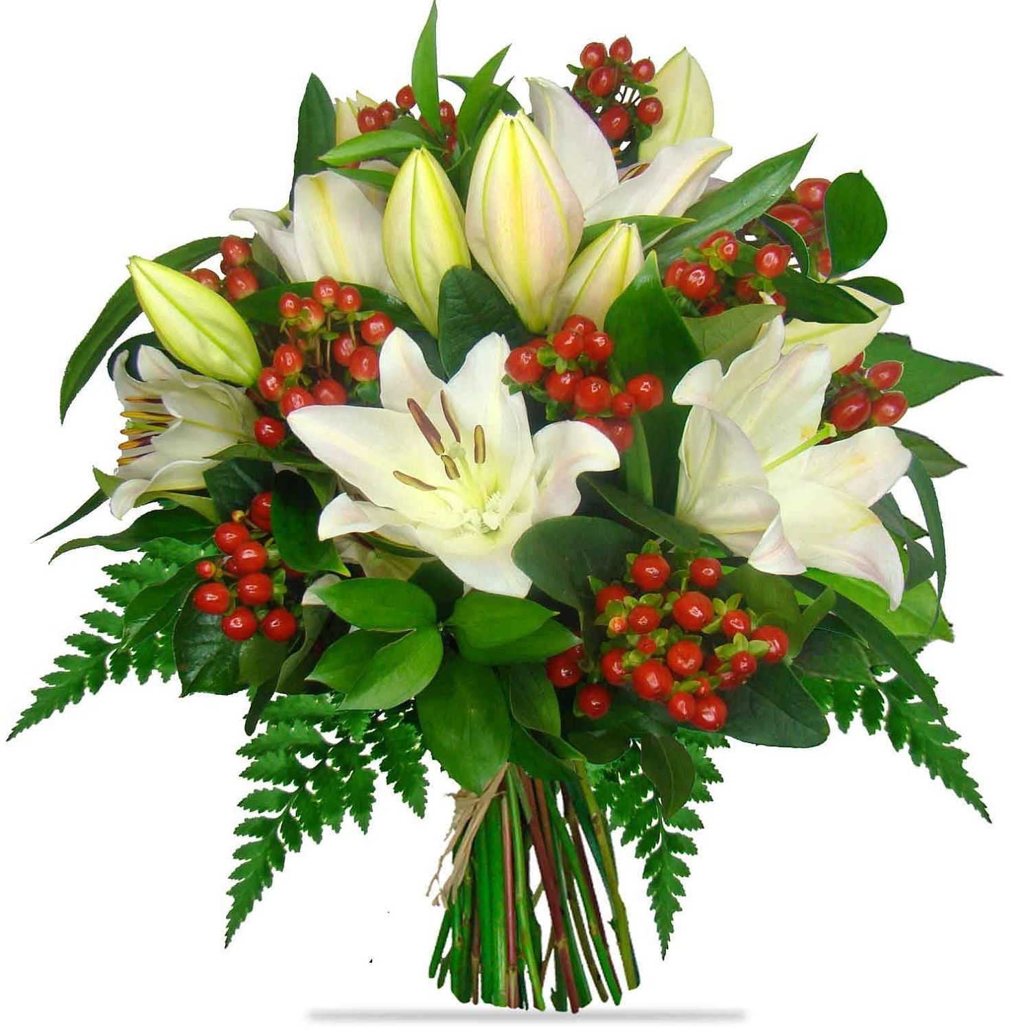 Exkluzívny 5 ks kráľovské ľalie, 7 ks hypericum, zeleň