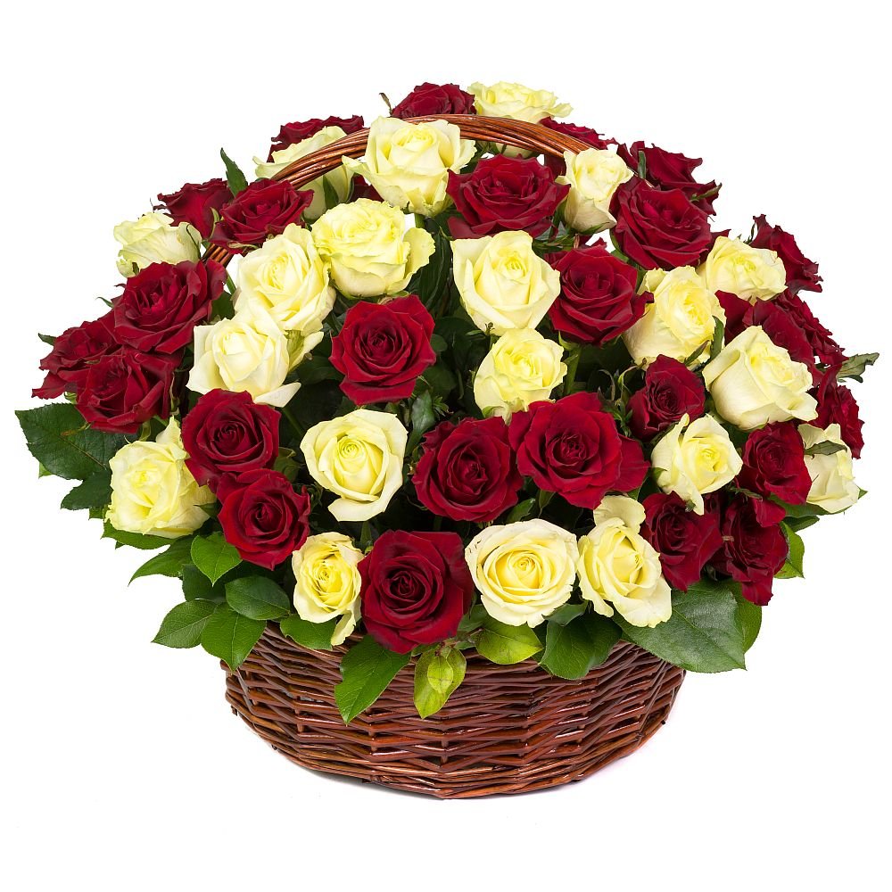 25 rosen, 25 rote rosen, 3 blumensteckschaum, korb, grün