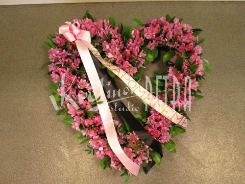 Funeral Heart of Pink Chrysanthemums and Tulips No. 45