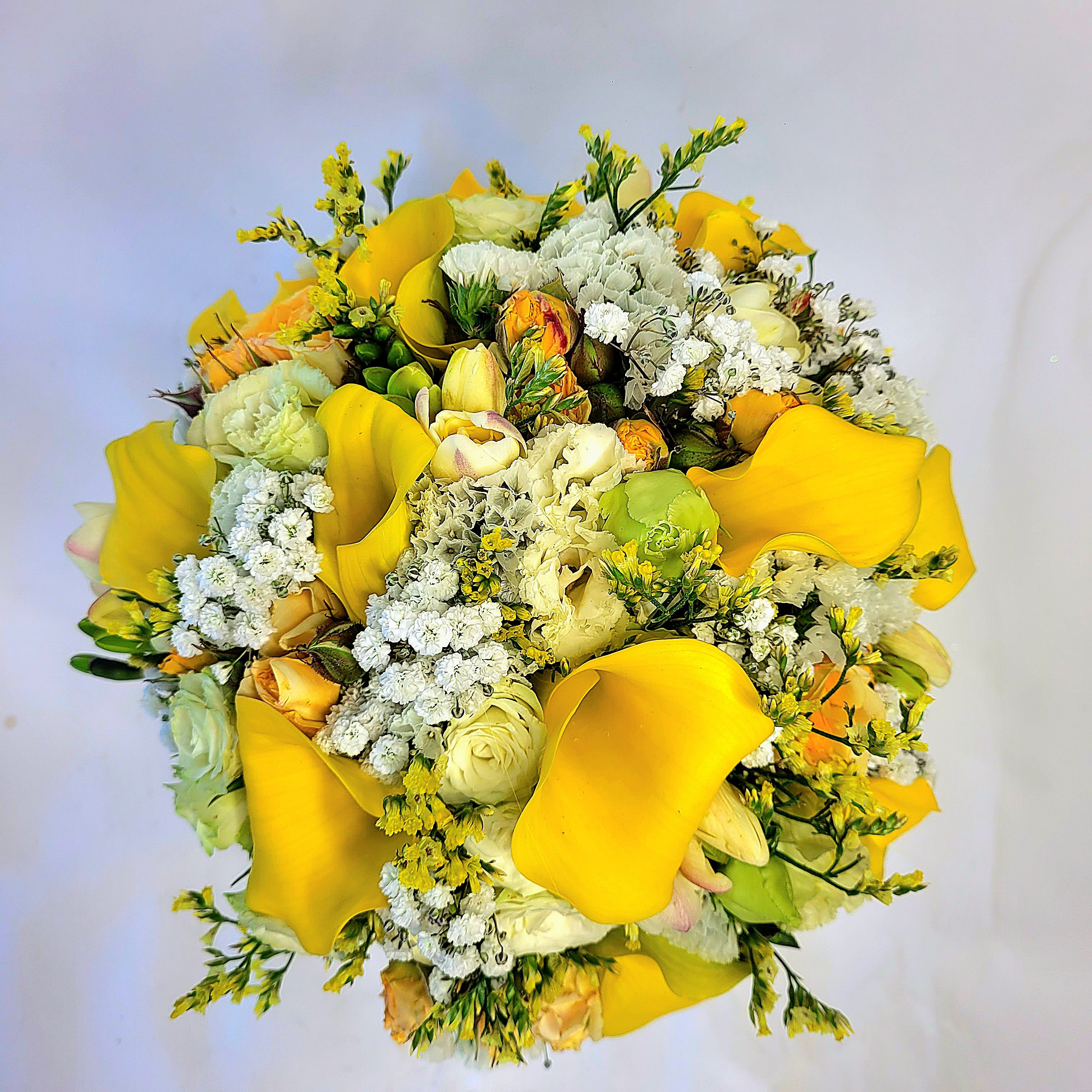 Bukiet ślubny okrągły z róż i lilii kalii nr 433