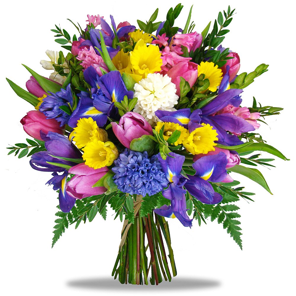 Standardní 3 ks iris, 3 ks narcis, 4 ks tulipán, 3 ks hyacint a dekorativní zeleň