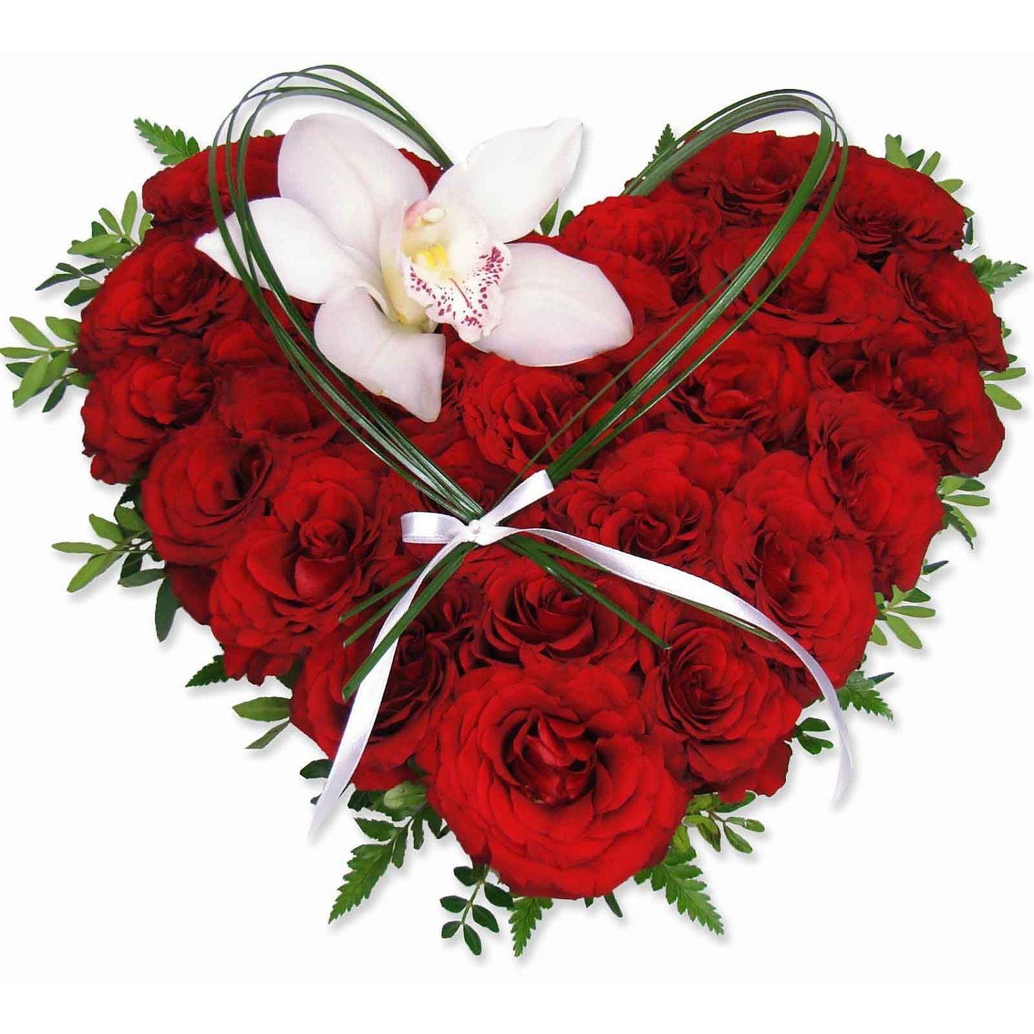 120 ks růží, 3 ks květy orchideje a dekorativní zeleň. Rozměr aranžmá: 60 x 60 cm