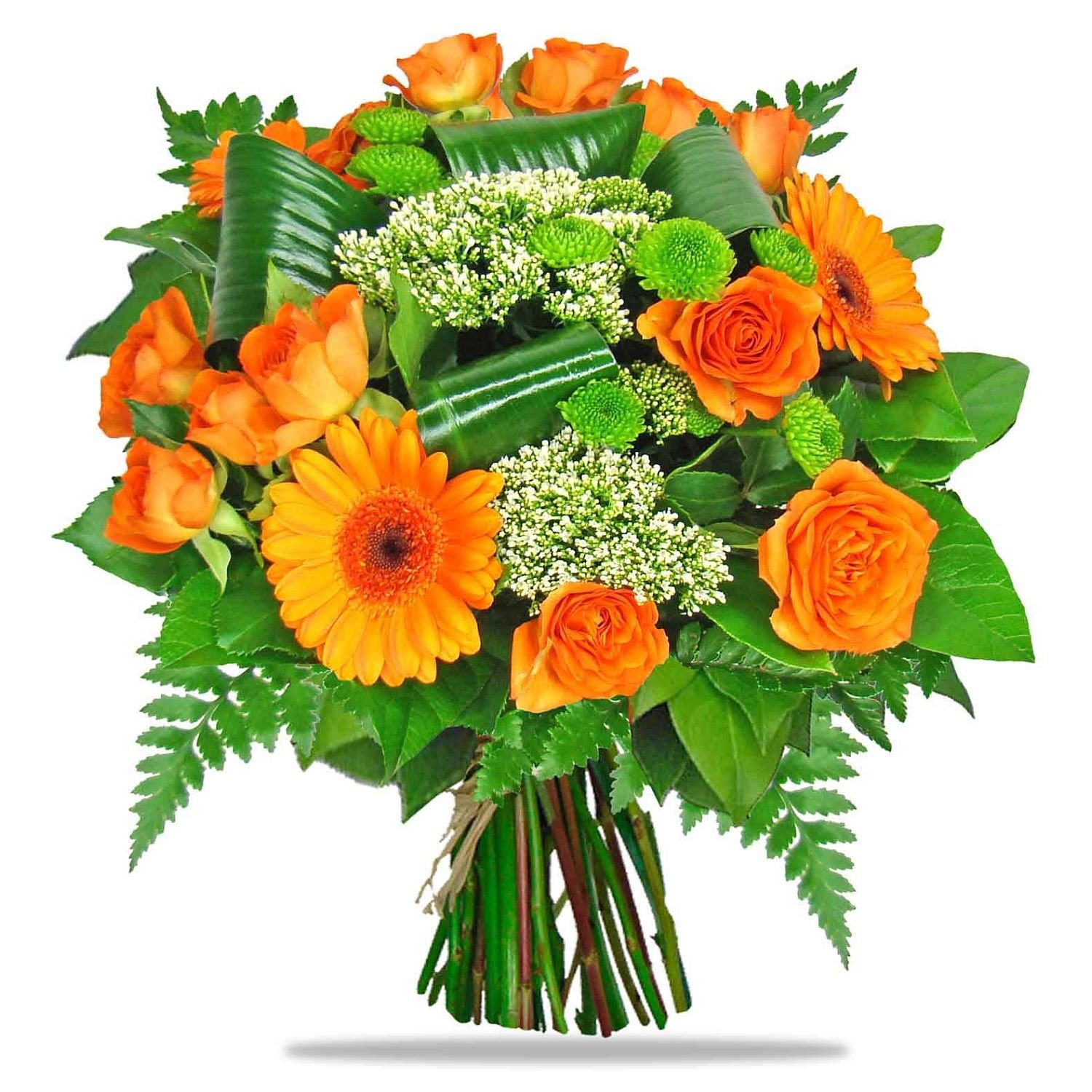 | Exkluzivní | 9 ks trsová růže, 9 ks germína, 9 ks chrysantema santini, 4 ks trachelium a dekorativní zeleň (aspidistra, rumora, salal) |