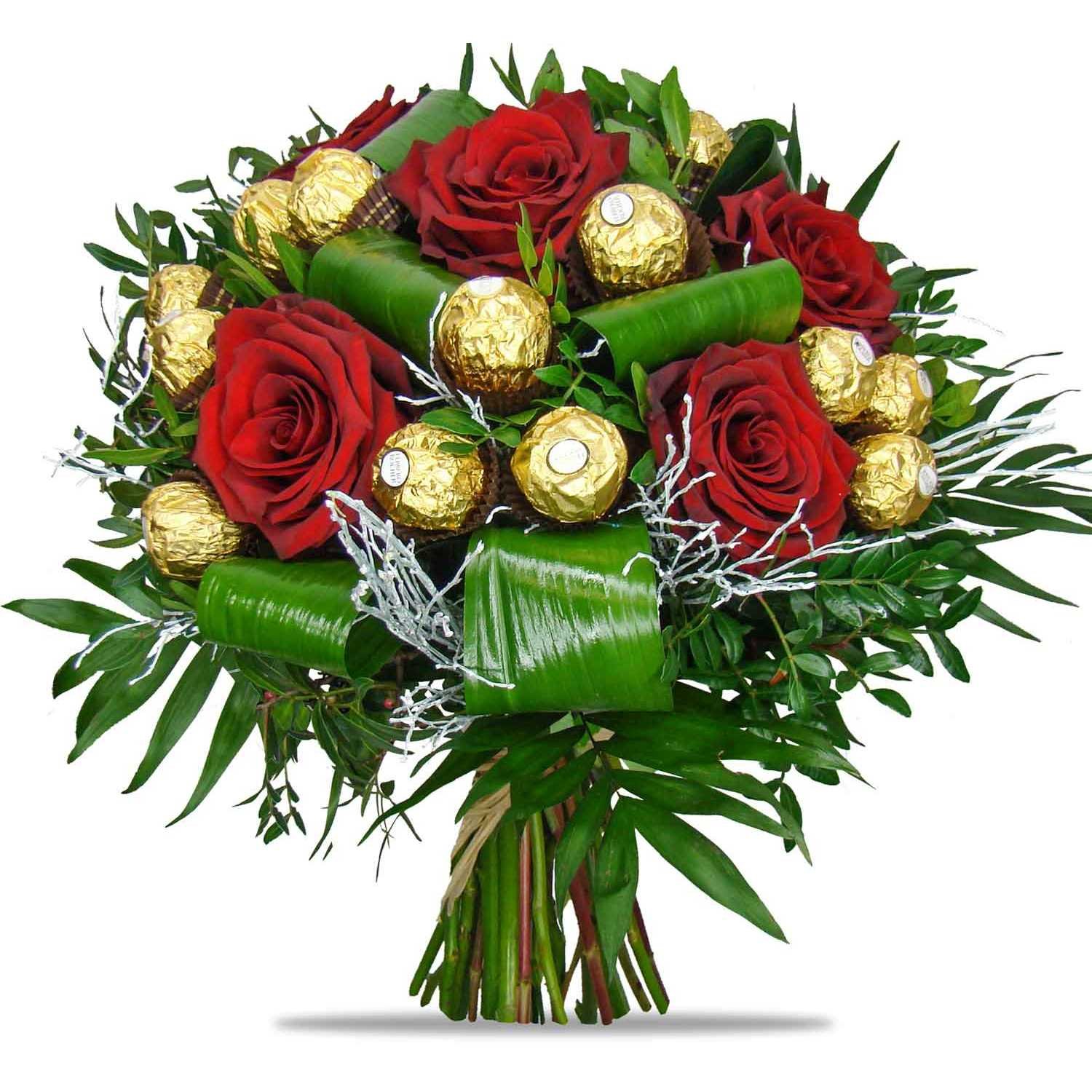 | Standardní | 5 ks růží, 200g Ferrero Rocher a dekorativní zeleň. Během letních měsíců může dojít k záměně za Ferrero Raffaello. |