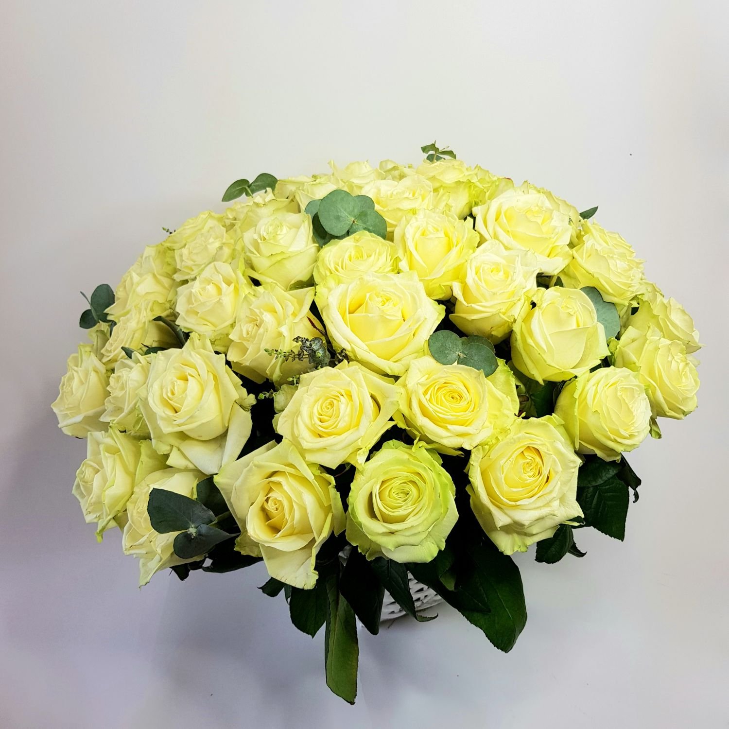 Vypichovaná kytice Pavlína je tvořena z 35ti bílých růží, které jsou doplněné zelení. Květy jsou vypichované do okraného obalu a proto není potřeba váza.