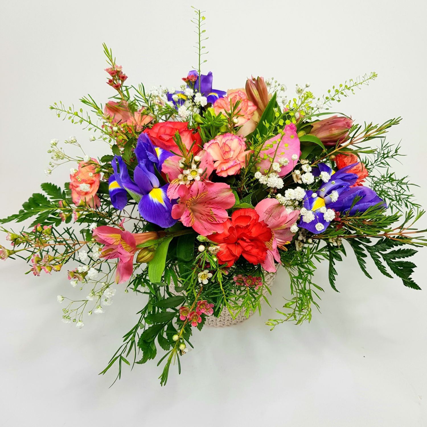 Vypichované aranžmá Radmila je tvořeno z irisů, mini karafiátů, alstromerií, gypsophily a dále z růží. Květy jsou doplněné zelení. Vše je naaranžované do okrasného obalu, kde se nachází hmota která je nasáklá vodou a proto květy dlouho vydrží a již nepotřebujete vázu.