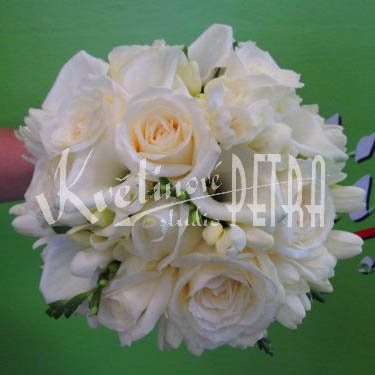 Svadobná okrúhla kytica z ruží, kaly a frézie č. 502